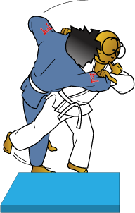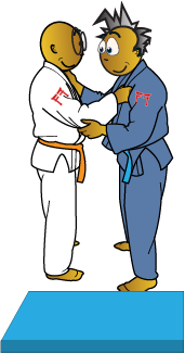 Tori (white) and Uke (blue) stand side on to the crash pad